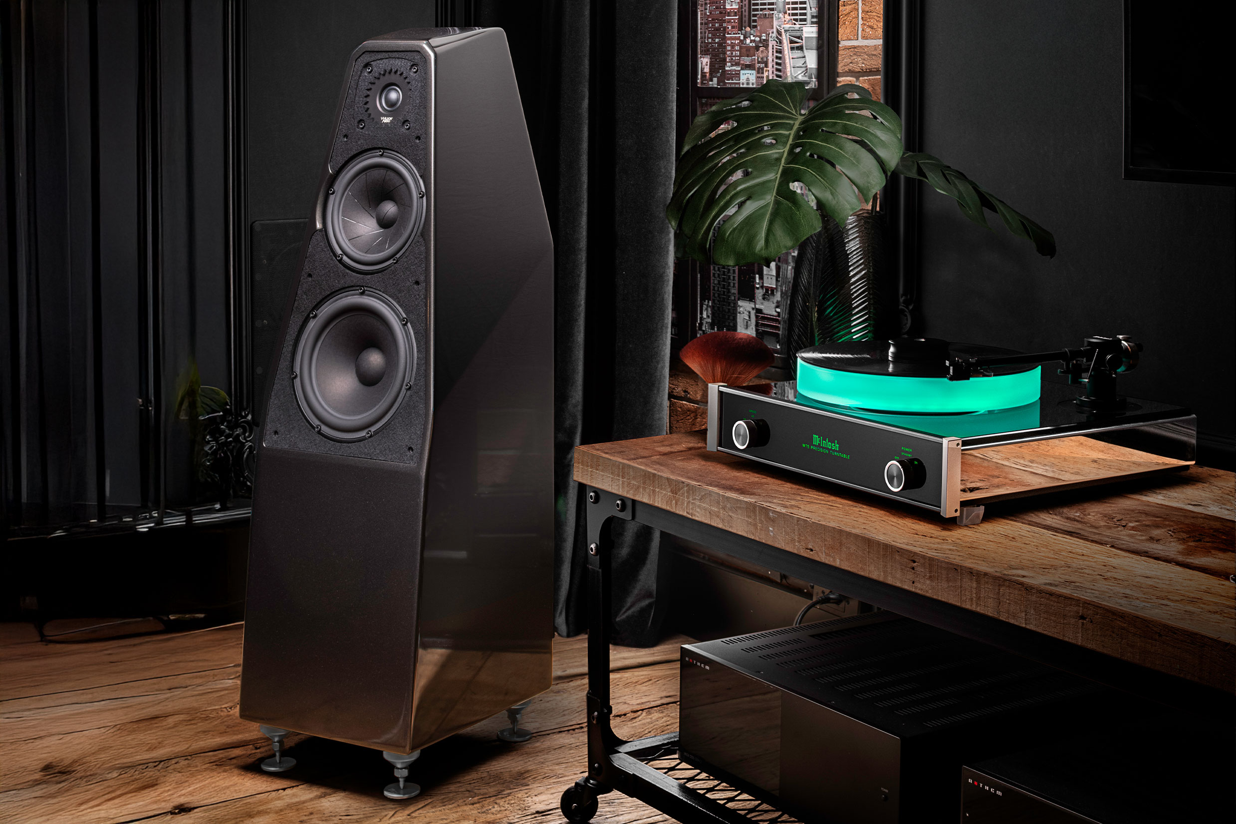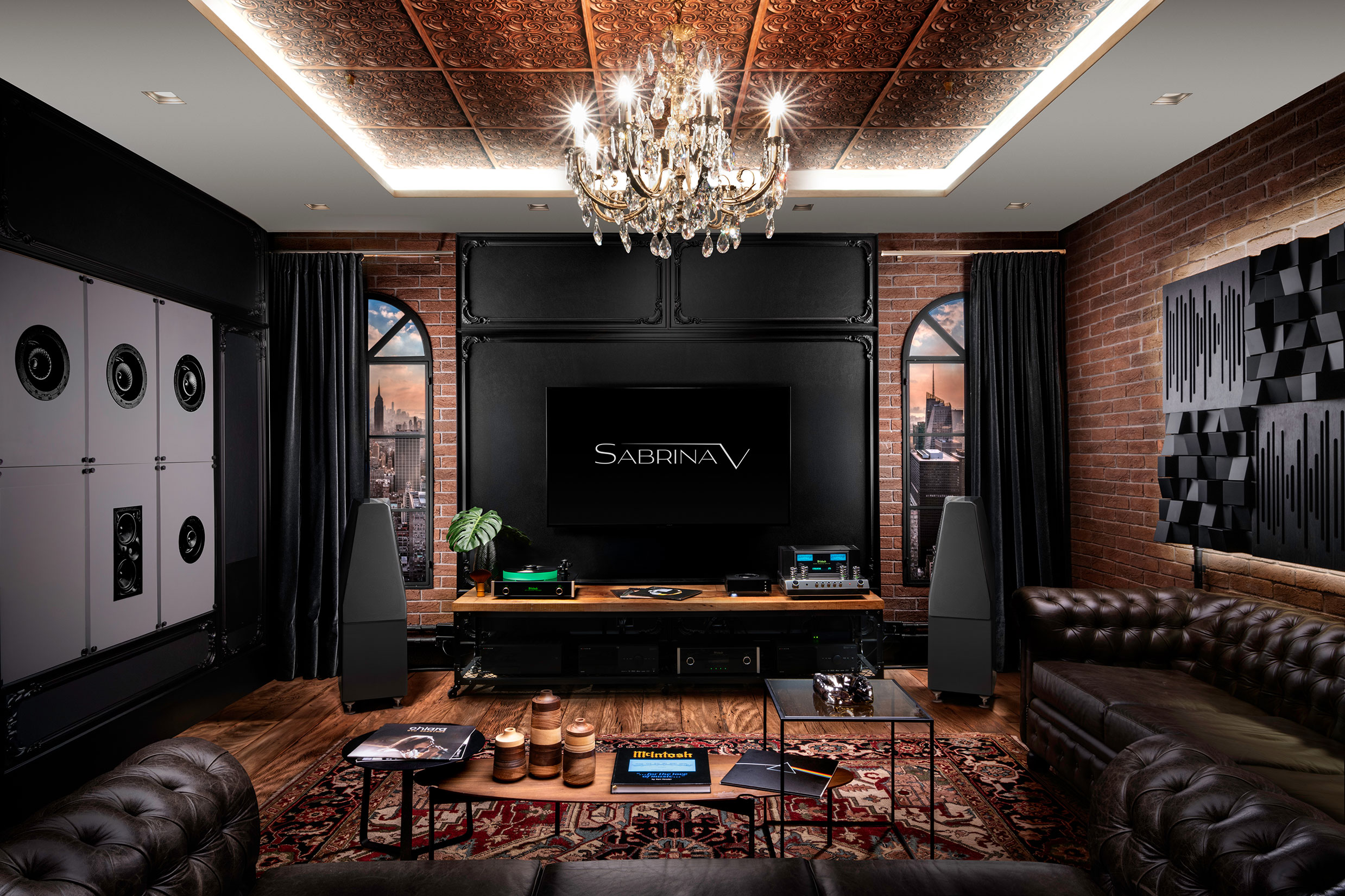 Neste espaço contemplamos opções para som ambiente com caixas embutidas, com uso ou não de DSP, ou subwoofers integrados. Em uma segunda demonstração, apresentamos um sistema multicanal para música e filmes com speakers virtualmente invisíveis. Como toque especial degustamos um sistema high-end de alta performance baseado nos fantásticos amplificadores valvulados da nova iorquina McIntosh que serve de inspiração para a decoração vintage deste espaço.