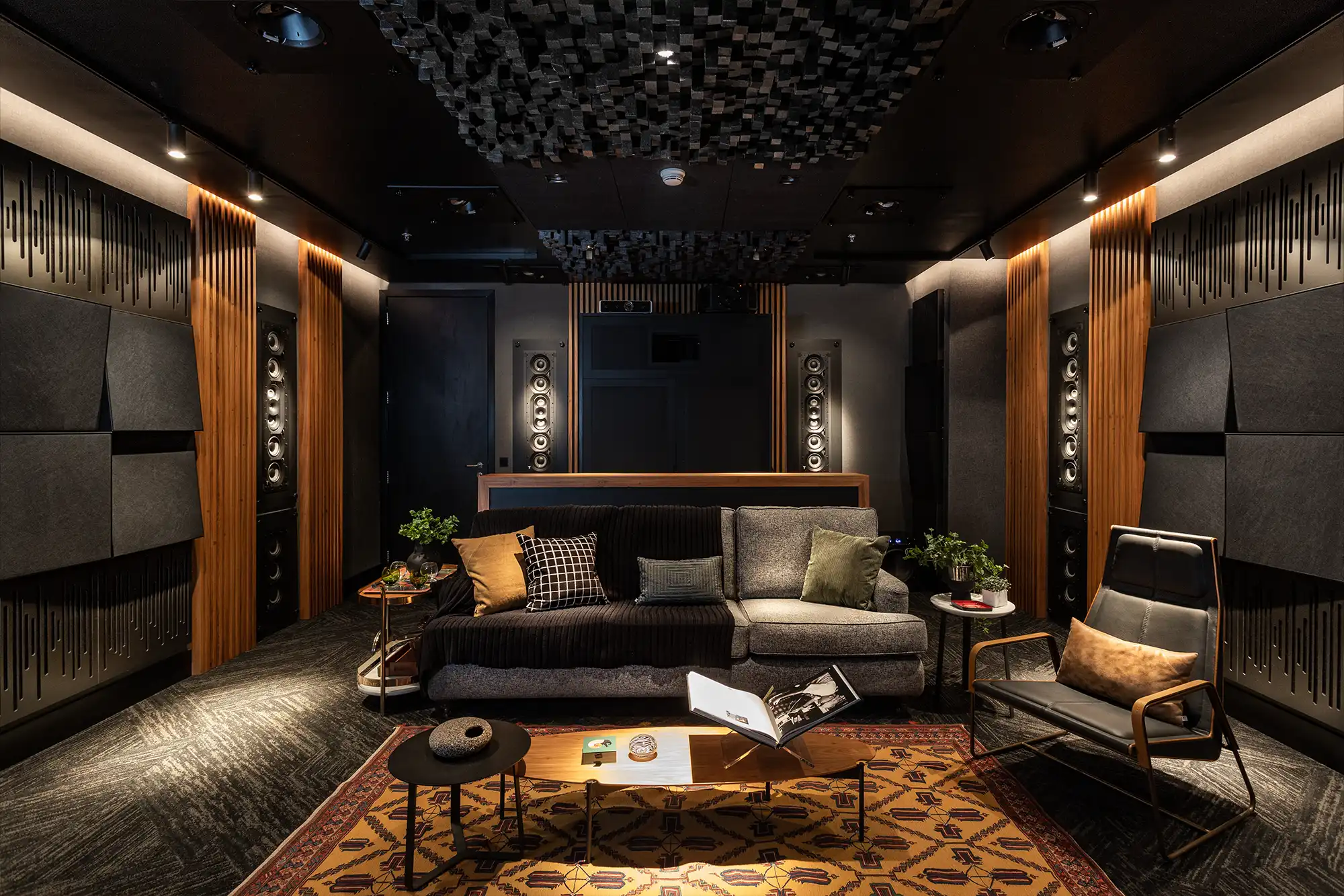 Para tornar o desempenho perfeito, a sala inteira flutua sobre a estrutura do prédio, estabilizando a vibração gerada pelos speakers, enquanto painéis acústicos contribuem para propagação do som da forma correta. Tudo isso garante um áudio mais imersivo e coerente do que qualquer sala de cinema profissional e abre portas para ouvir músicas de uma forma envolvente com o Dolby Atmos Music.