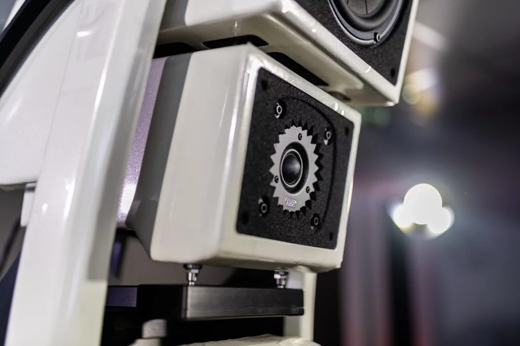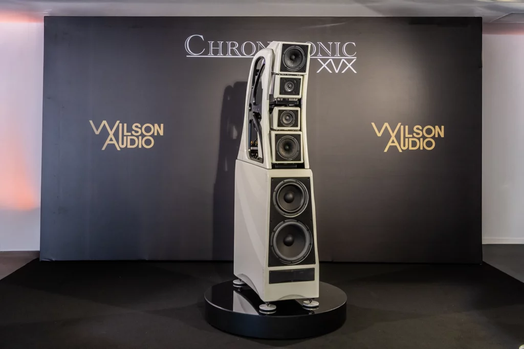 No coração da exposição, a Chronosonic XVX ocupa uma área ampliada, permitindo que o visitante a contorne por completo. Cada ângulo revela novos detalhes de volume, proporção e engenharia, como uma escultura monumental de som.